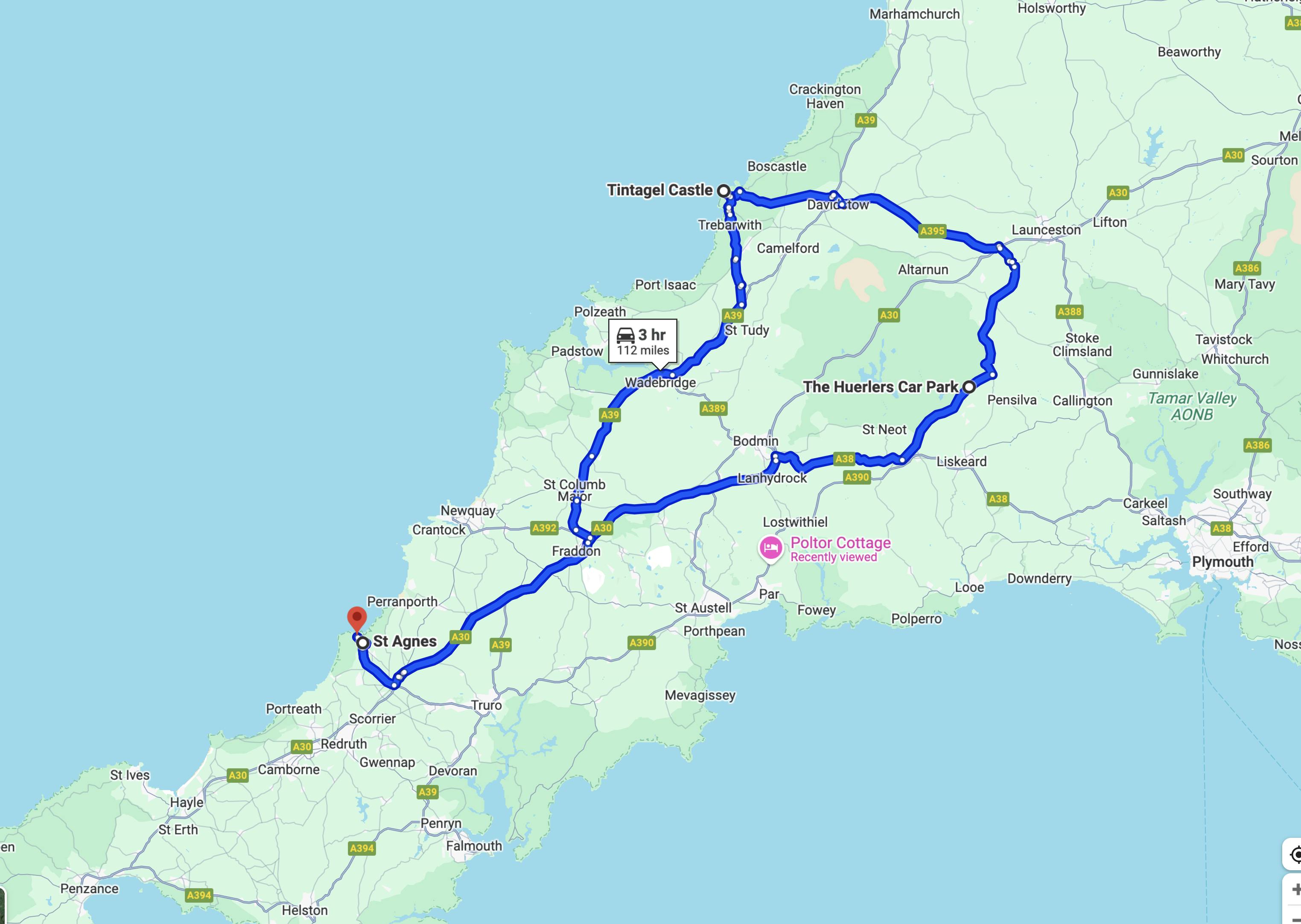 Directions: 45-minute drive from St Agnes